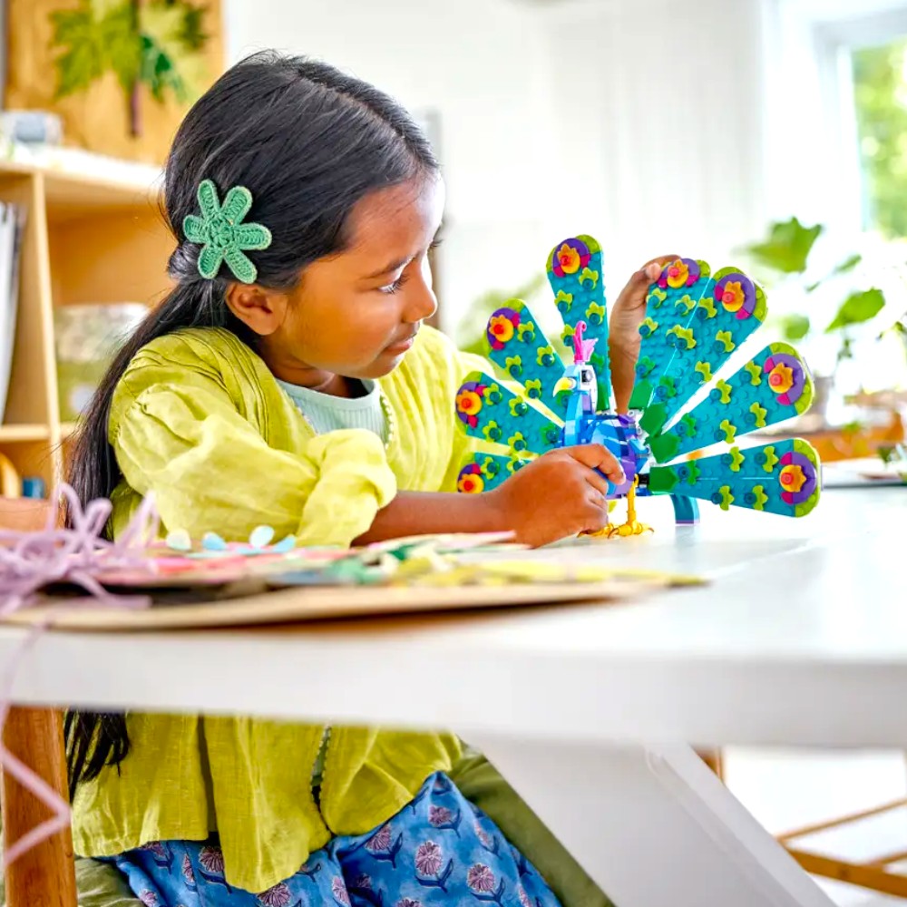 Con el set de construcción Creator 3 en 1 Pavo Real Exótico (31157), ¡los niños y las niñas de 7 años o más podrán construir 3 juguetes LEGO® de animales exóticos diferentes, jugar con ellos y exponerlos!