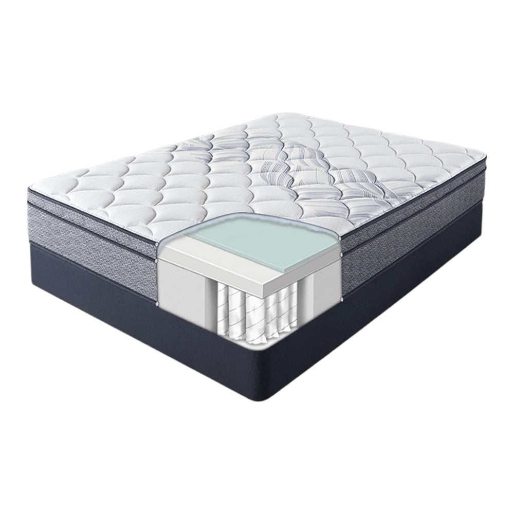 - Tecnología de bobina Serta Wrapped Support™: Resortes específicamente forrados que brindan un mejor soporte y reducen la transferencia de movimiento.