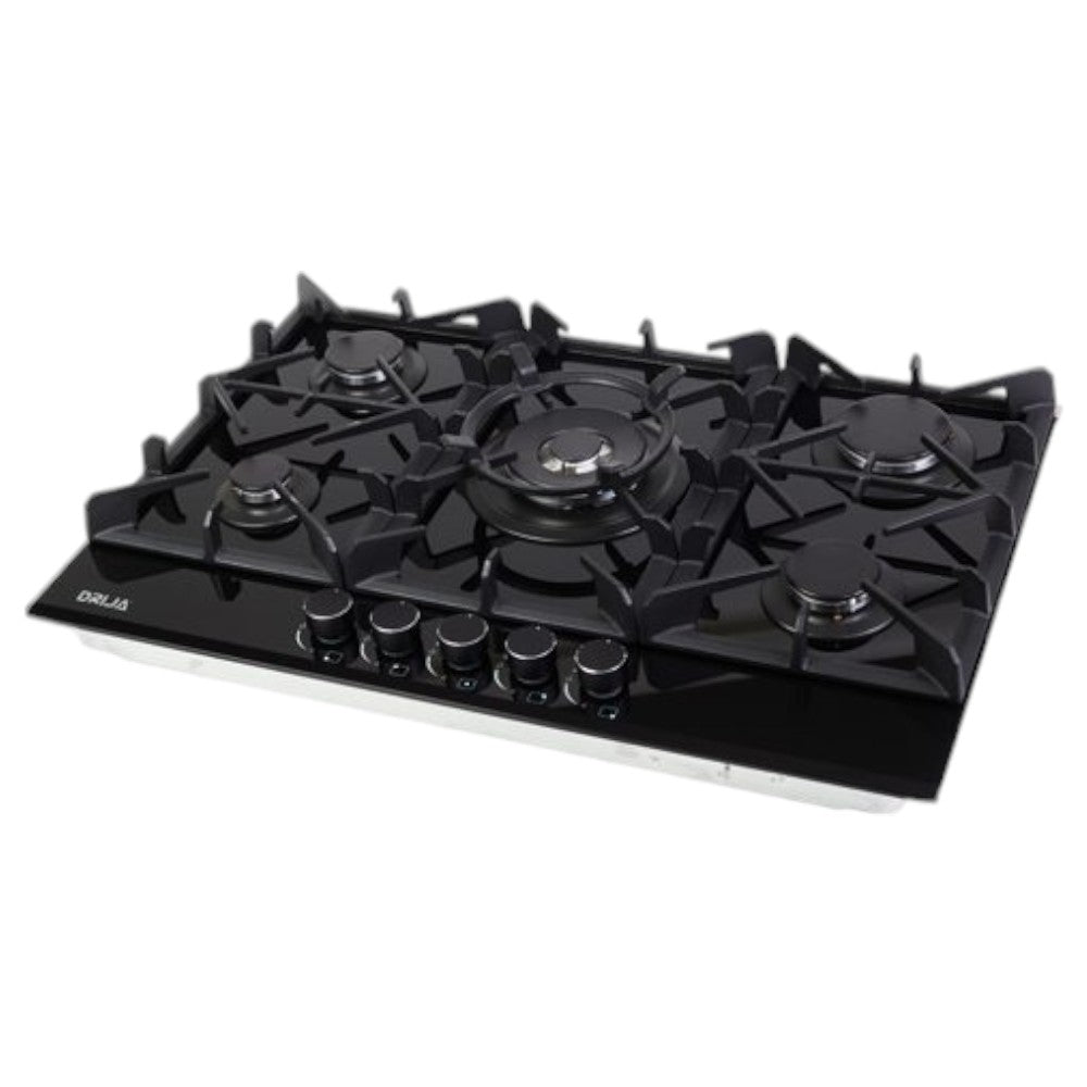 - Con válvula de seguridad, vidrio templado negro, porta wok y perillas de lujo, garantiza un control preciso y seguro.
